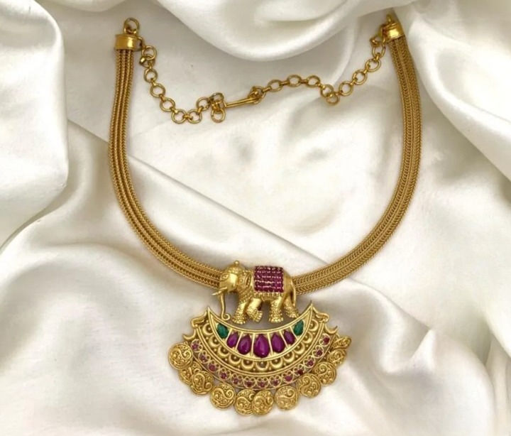 Antique Finish Ruby Stone Studded Elephant Designer Necklace With Earrings