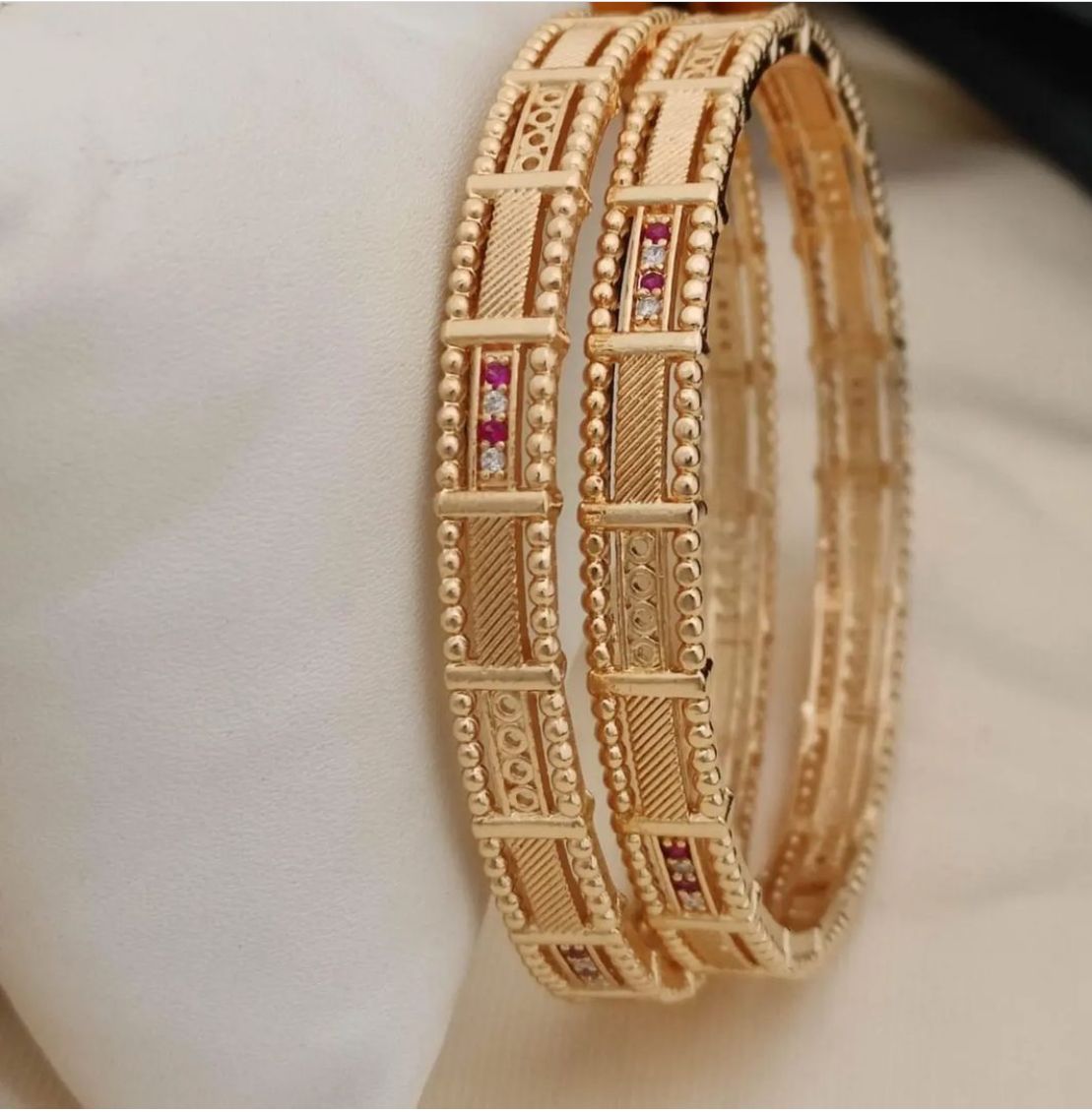 Casual Wear Micro Gold Plated Ad Diamond Studded 2 Pcs Beatyfull Fancy Bangle