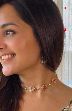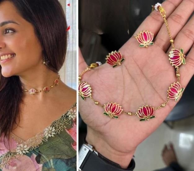 Be the first to review “High Gold Plated Meena Work Pink Lotus Necklace with Earrings for Women”
