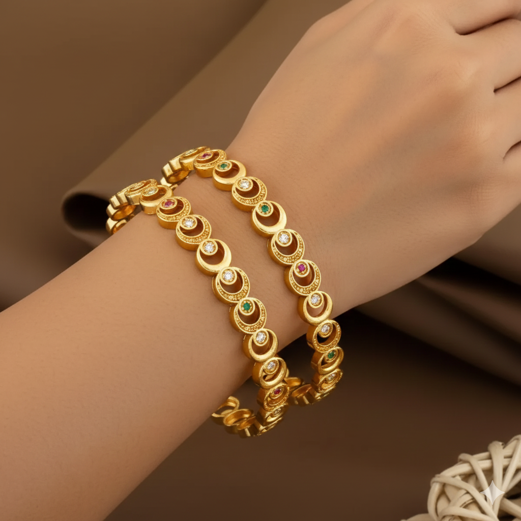 New Designer Micro Gold Plated Ad Diamond Fancy 2 Pcs Moon Bangle For Women